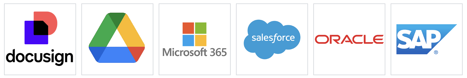 Connect with 200+ platforms including Microsoft 365, Google Drive/Workspace, Salesforce, SAP, Oracle, and DocuSign to create seamless, end-to-end legal workflows.