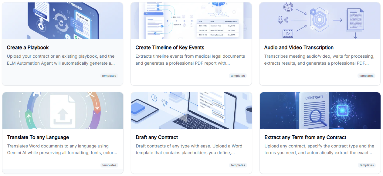 Now, legal teams can build and deploy custom, bespoke enterprise AI agents to automate a wide variety of legal tasks. ELM’s Automation Agent (ELMA) combines deep legal expertise with powerful Agentic AI capabilities.