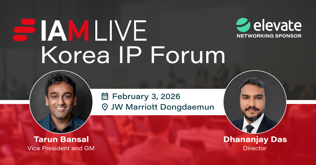 Elevate’s IP experts will be attending the IAM Live Korea IP Forum to engage with in-house IP teams and innovators on building high-impact, future-ready IP strategies.