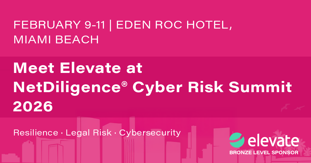 Elevate experts will be at the NetDiligence® Cyber Risk Summit in Miami Beach, Florida, where industry leaders will discuss resilience, legal risk, and cybersecurity. Discover how Elevate’s Post-Data Breach Response solution enables organisations to respond quickly and confidently to cyber incidents.