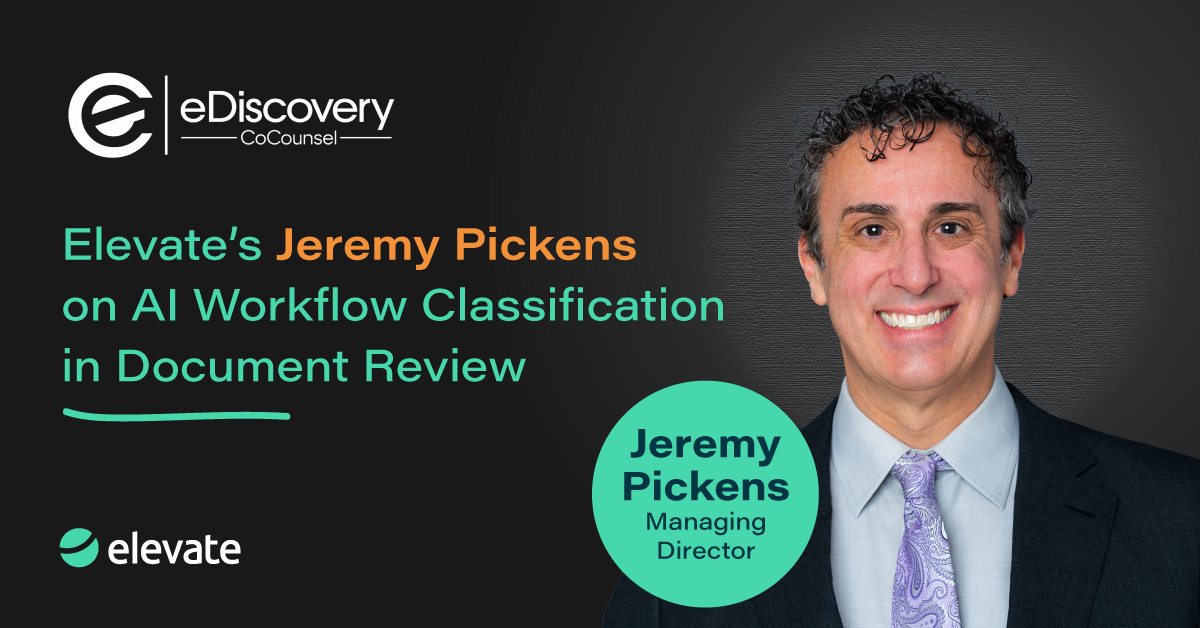 February 05, 2026 — In a recent interview with eDiscovery CoCounsel, PLLC, Elevate expert Jeremy Pickens offers clear, practical insight on how AI-driven document review workflows operate, and why understanding those distinctions matters for legal teams and decision-makers as generative AI gains traction in eDiscovery.